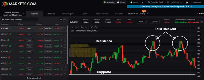 Potrebbe ad esempio accadere che il prezzo torna nel range e il mercato torni in equilibrio tra compratori e venditori.