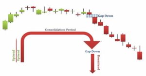 Analisi tecnica con il Price Gapping Play. Questo pattern esiste in due possibili configurazioni e si articola in tre distinte fasi di mercato