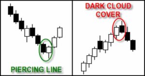Sfruttando il concetto di gap, i pattern Dark Cloud Cover e Piercing Line possono segnalare la possibile inversione di un trend
