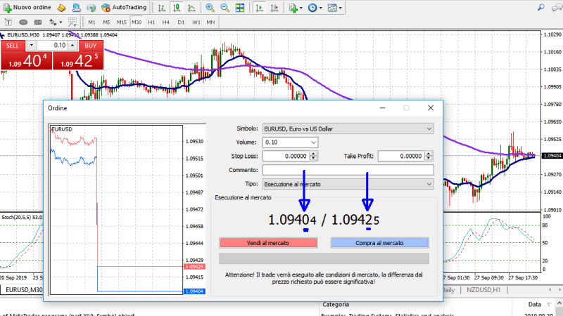 Nel nostro esempio, nella coppia EURUSD il prezzo di vendita è 1,0940 dove ZERO (il quarto decimale) è il pip.