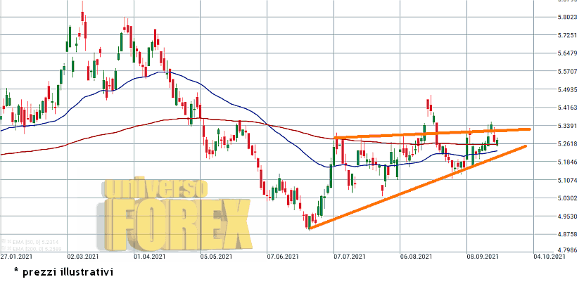 La coppia è ancora dentro il cuneo ascendente che si è formato negli ultimi mesi, come vediamo sulla piattaforma .