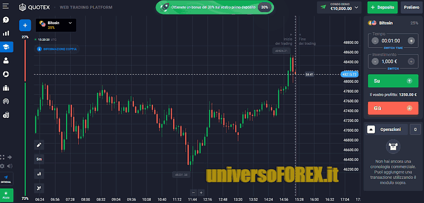 Uno dei player di mercato più interessanti nel settore binario, è il broker Quotex (extra UE, quindi non soggetto alla disciplina Esma).