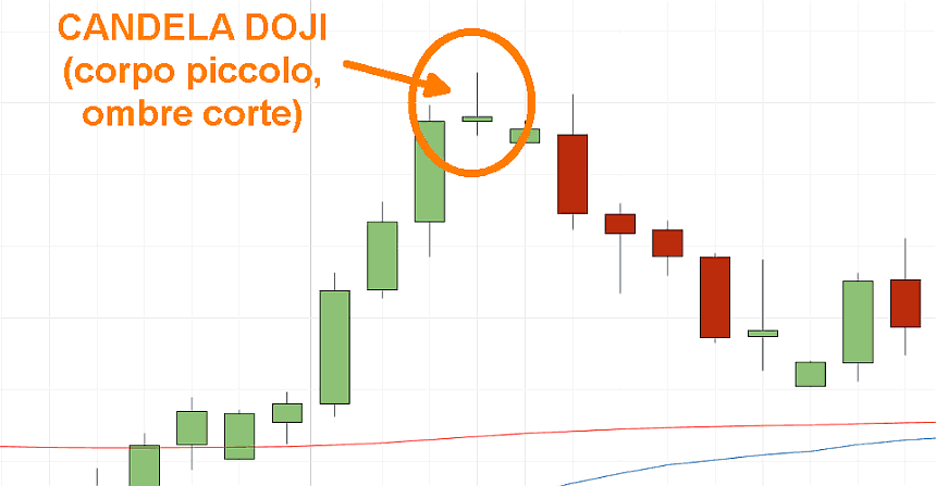 Significa infatti che la battaglia tra compratori e venditori è in equilibrio. L’eventuale presenza di ombre piccole accentua questo senso di equilibrio e incertezza.