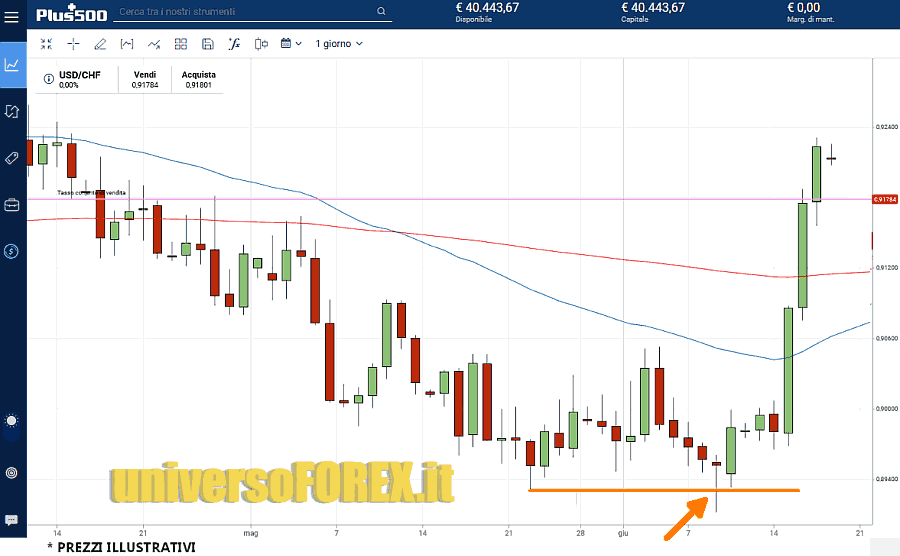 …infatti questa candela compare ANCHE in prossimità di un livello di supporto, come vedi sulla piattaforma di investimento . Tutto ciò rende ancora più forte il messaggio rialzista che ci manda.