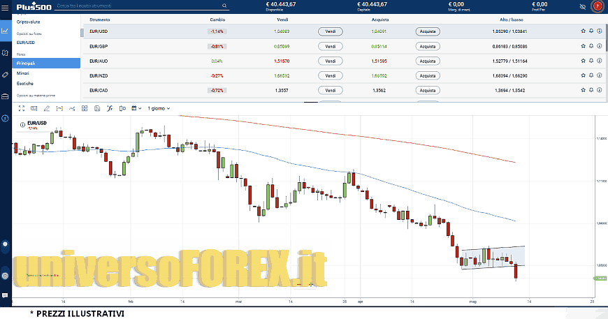Il cambio si è affacciato addirittura sotto la soglia di 1,04, arrivando sui minimi dall’inizio del 2017. La breve fase di range durata appena una settimana sembra essere finita, come vediamo sul broker .