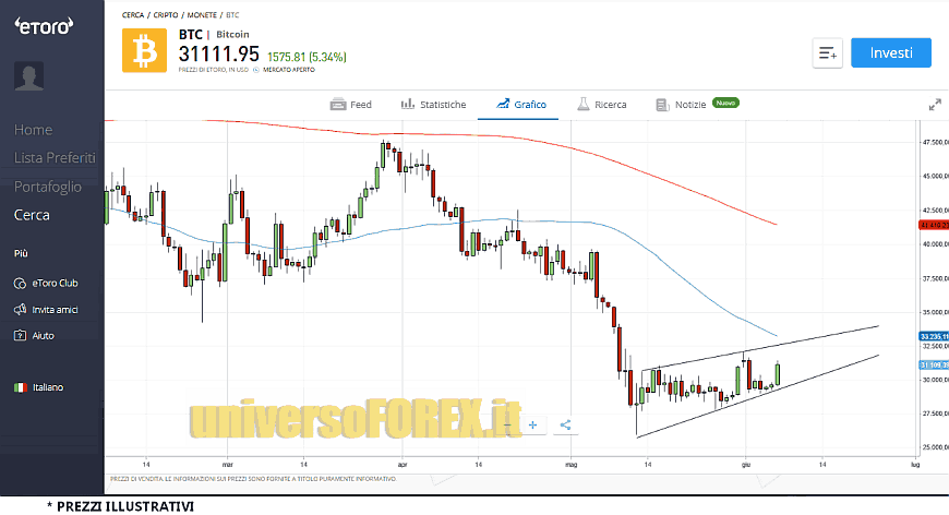 Il prezzo del è riuscito a riportarsi oltre la soglia dei 30mila, dopo aver testato nei giorni scorsi il lato inferiore di un pattern wedge (cuneo) ascendente.