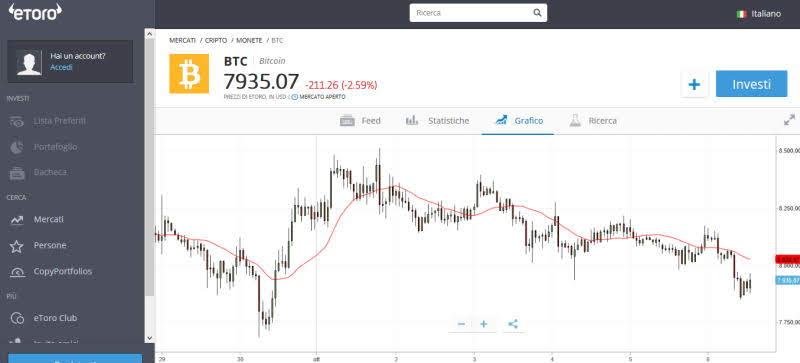 Dopo aver sofferto parecchio nella settimana conclusiva di settembre, ha fatto un balzo avanti (a inizio settimana, fino a 8500) e poi tre passi indietro (tre giorni di rosso consecutivo da metà settimana), finendo per rimanere poco sotto quota 8000 dollari, come vediamo sulla webtrader . Praticamente allo stesso punto in cui si trovava sabato scorso.