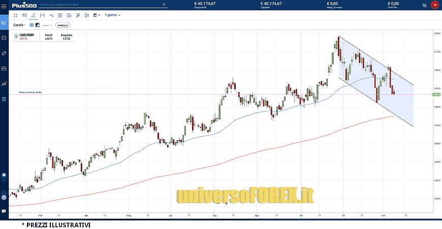 Come possiamo vedere sulla piattaforma di investimento , negli ultimi giorni la coppia è rimbalzata sul lato superiore del canale discendente cominciato sul finire di settembre.