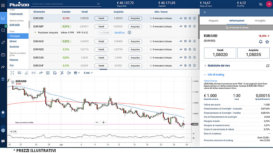 * Tutte le funzionalità sono disponibili sulle piattaforme native di Plus500 (desktop/iOS/Android).