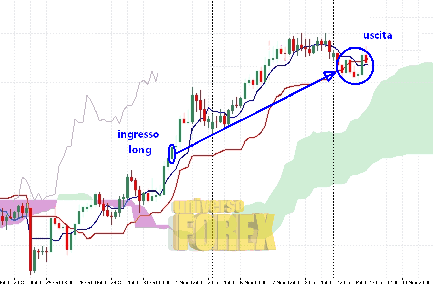 Al contrario, i segnali di acquisto e di vendita si generano solo con la fuoriuscita dei prezzi dalla Kumo.
