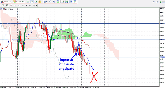 COSA IMPORTANTE: come avremo modo di ribadire anche più avanti, quando la Kijun-sen (rossa, quella di lungo periodo) è temporaneamente piatta diventa un “attrattore” delle correzioni.