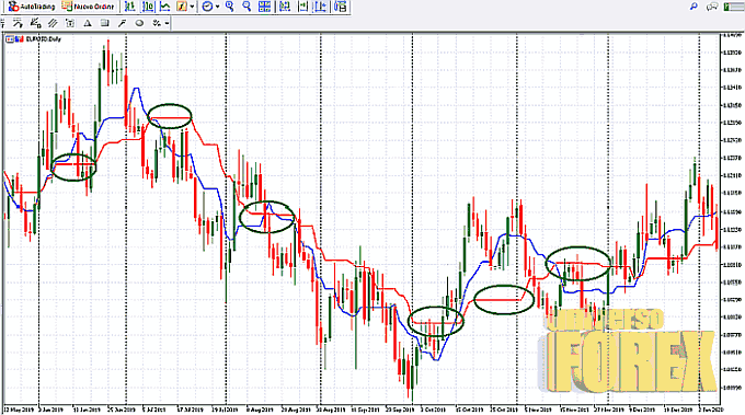 Altra cosa importante, le due linee incorporano anche il Momentum dei prezzi: più l’inclinazione è ripida, più è elevata la spinta verso l’alto o il basso.