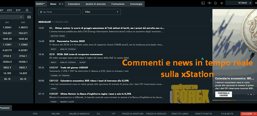 Webinar dal vivo. Per aiutarti a potenziare le tue capacità, un team di esperti di mercato rinfresca le tue capacità nell’analisi tecnica, tutto comodamente da casa tua. Utile sia ai trader esperti che alle prime armi, i webinar possono dare un contributo alle tue strategie di trading (qui trovi il ).