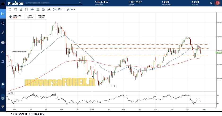 Un rimbalzo verso l’altro invece trova le prime resistenze sulla EMA50, poi a quota 140,9 e quindi a 142.