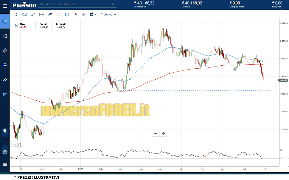 Sul prezzo dell’ sta incidendo la recente corsa del dollaro (il è salito a 106) e l’aumento dei rendimenti dei titoli del Tesoro, grazie alle aspettative che la Federal Reserve americana manterrà la politica monetaria restrittiva per un periodo prolungato.