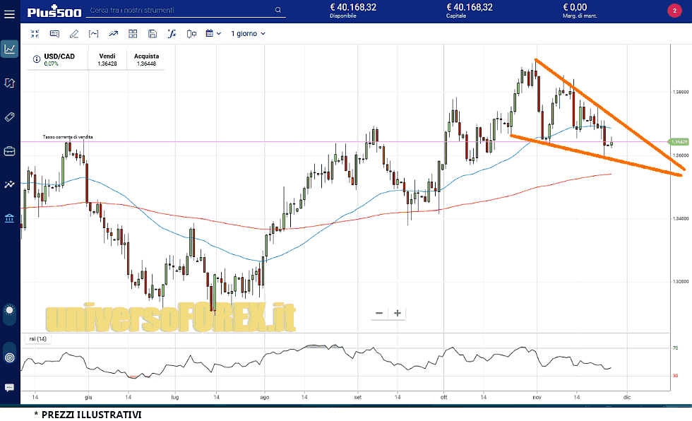 Si sta formando un pattern “cuneo”, che solitamente si comporta da figura di continuazione del trend.