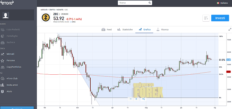 Dopo un fortissimo recupero dai minimi di metà marzo, ha incontrato un ostacolo arduo sul Fibonacci 61.8, dove il prezzo è rimbalzato più volte da inizio giugno (fonte grafica broker ).