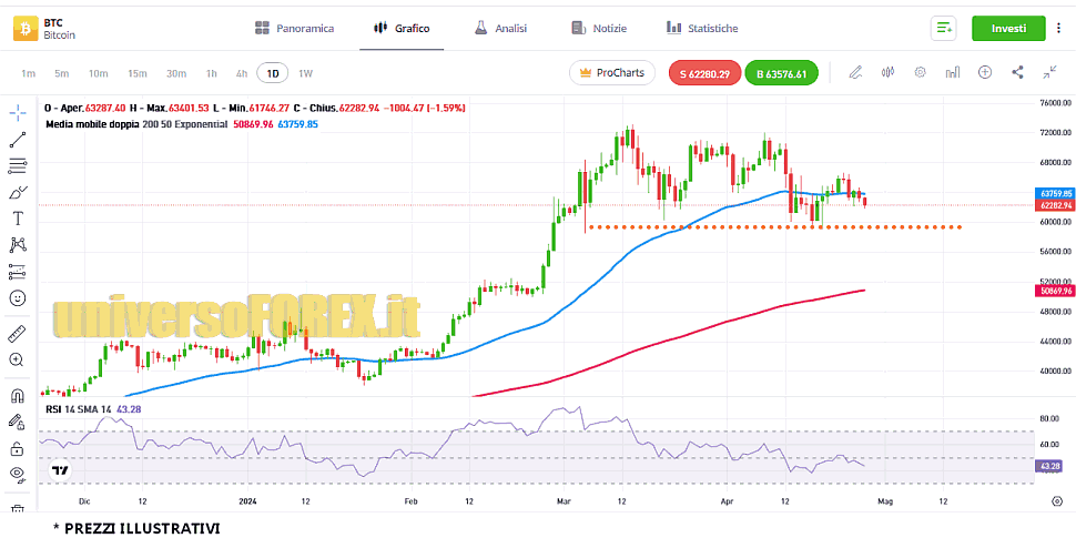 Come vediamo sulla piattaforma di investimento , il prezzo sta adesso testando la Ema50, che potrebbe essere un crocevia importante per il futuro.