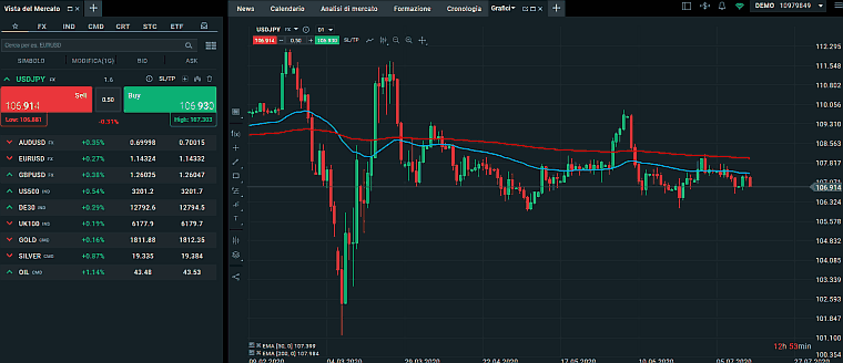 Mentre rispetto a molte valute principali lo Yen si muove in ordine sparso, ma senza grosse variazioni, il cambio USD-JPY scivola sotto quota 107, dopo essere rimbalzato sulla media mobile 50 periodi (fonte grafica ).