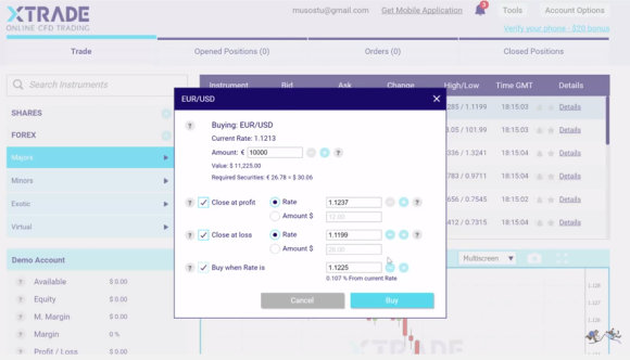 Come ben sai, l’ideale per prendere confidenza con una piattaforma di trading e i suoi strumenti è poter operare con un practice account. Anche Xtrade offre un conto demo che consente di operare con soldi virtuali.