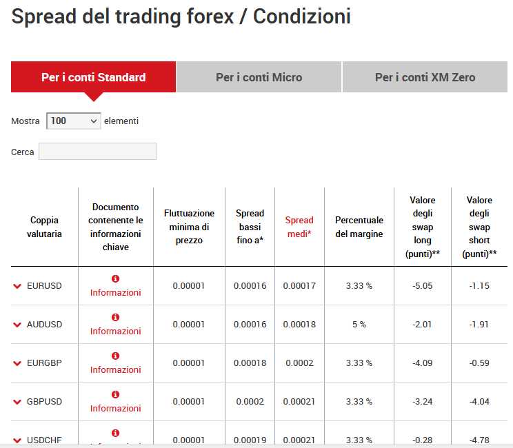 1) Conto MICRO: Senza commissioni. Spread su tutte le coppie principali a partire da 1 Pip. Un micro lotto equivale a 1.000 unità della valuta base della coppia. Il volume minimo/massimo dell’operazione è 0,01/100.
