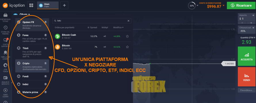 Oggi tutti i clienti al dettaglio di IQoption possono fare investimenti su valute, azioni, criptovalute, commodities, indici ed anche Fondi Etf.