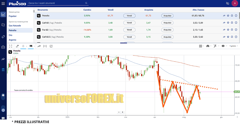 Nei prossimi giorni occorrerà tenere d’occhio con molta attenzione il grafico del prezzo, dal momento che – come vediamo nell’immagine sulla piattaforma di investimento – potrebbe concretizzarsi un pattern “head and shoulders“.