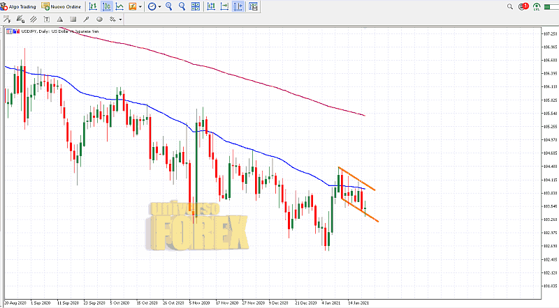 Sul fronte valutario, lo Yen giapponese guadagna terreno contro il dollaro, con il cross USDJPY che si muove nella “bandiera” dopo aver toccato un paio di settimane fa i minimi di 10 mesi (fonte grafica ).