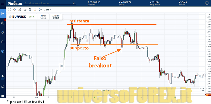 In questi casi si parla di “falso breakout”, come nell’esempio qui sotto…