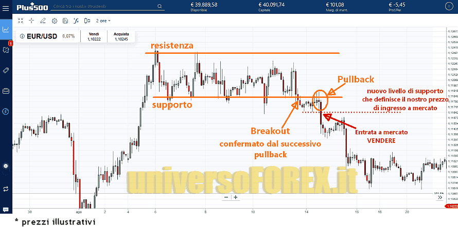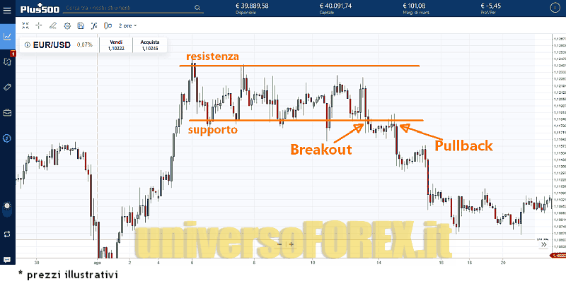 Livelli di prezzo per acquistare e vendere con la strategia breakout pullback trading