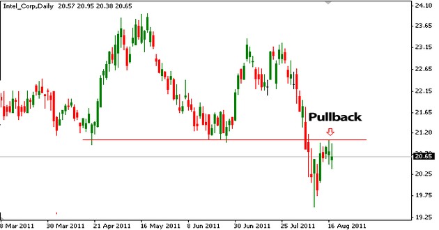 Il PULLBACK TRADING invece si verifica quando il prezzo, subito dopo un breakout, fa una sorta di marcia indietro e torna di nuovo a rimbalzare (o comunque si riavvicina) sul supporto o sulla resistenza precedentemente infranta.