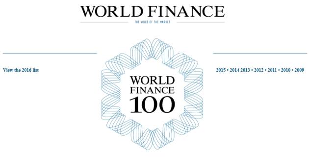 World Finance 100. Anche un broker tra le nominations del 2016…