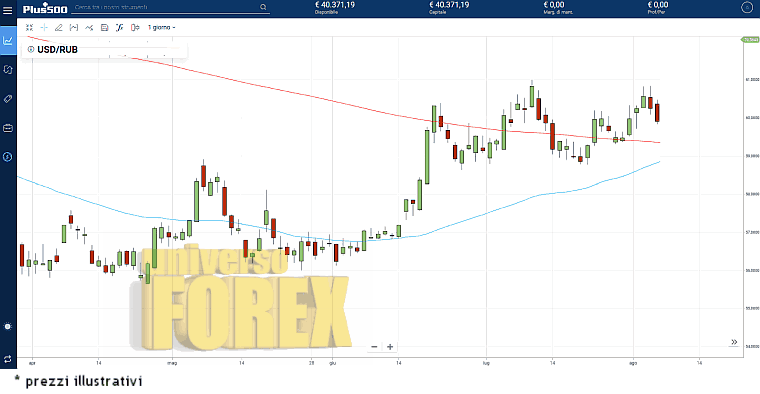 Per questo motivo il rublo ha chiuso la settimana con uno spunto molto forte sul Forex, con guadagni dello 0,6% contro il dollaro. La coppia continua ad oscillare in un range stretto compreso tra 58,9 e 60,8 (fonte grafica broker ).