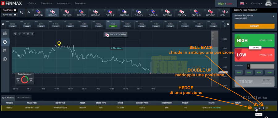 Funzioni speciali: HEDGE, DOUBLE UP, SELL BACK