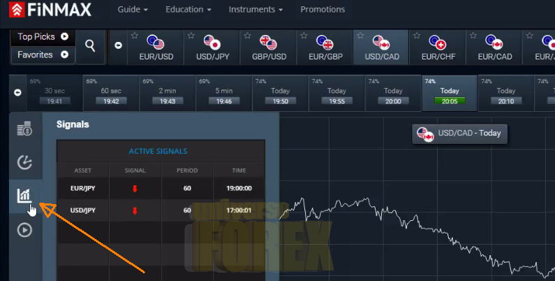 Ci sono alcuni strumenti molto importanti che Finmax mette a disposizione dei suoi trader. Anzitutto il SERVIZIO DI SEGNALI integrato nella piattaforma stessa.