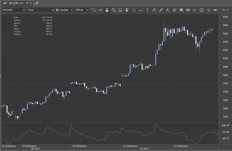 Da allora in poi però la criptovaluta più famosa al mondo non si è più fermata, tanto che a meno di 24 ore dal calo il prezzo del BTC ha guadagnato ben il 7,13%, come possiamo vedere sulla piattaforma JForex del broker .
