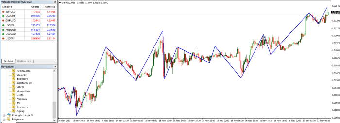 Sulle migliori piattaforme di trading solito l’indicatore Zig-zag può essere personalizzato con la definizione di TRE PARAMETRI: